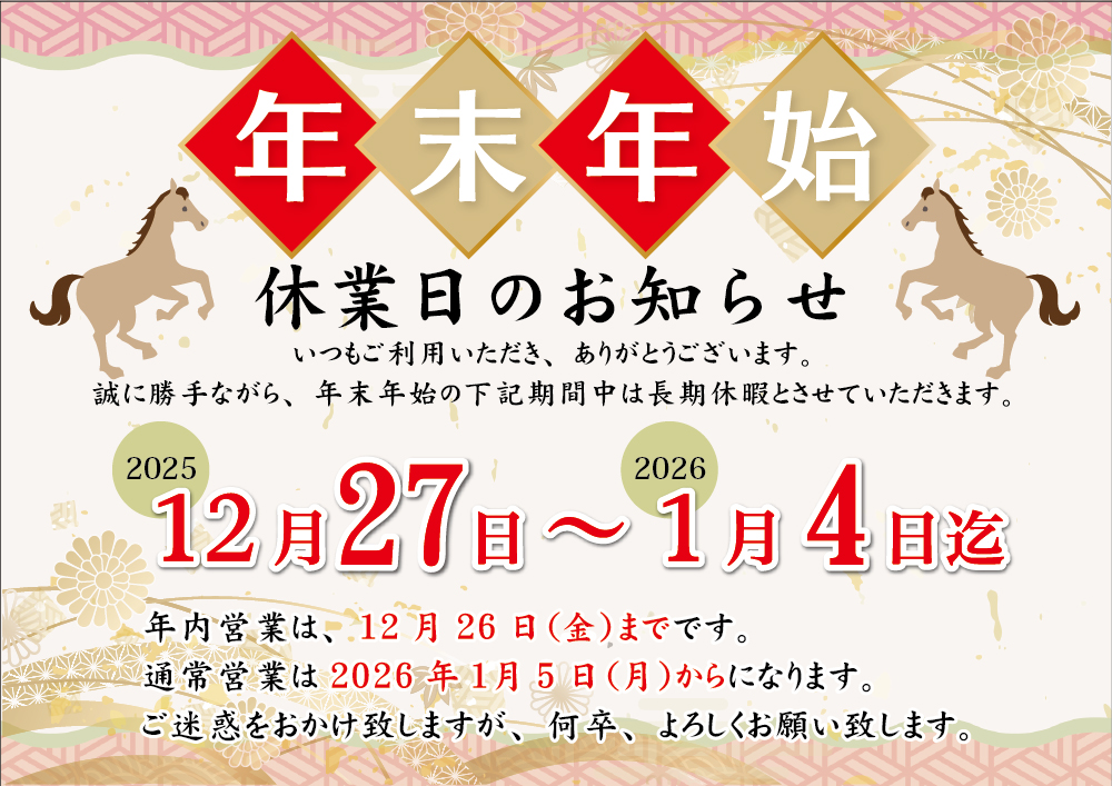 誠に勝手ながら、年末年始につきましては、